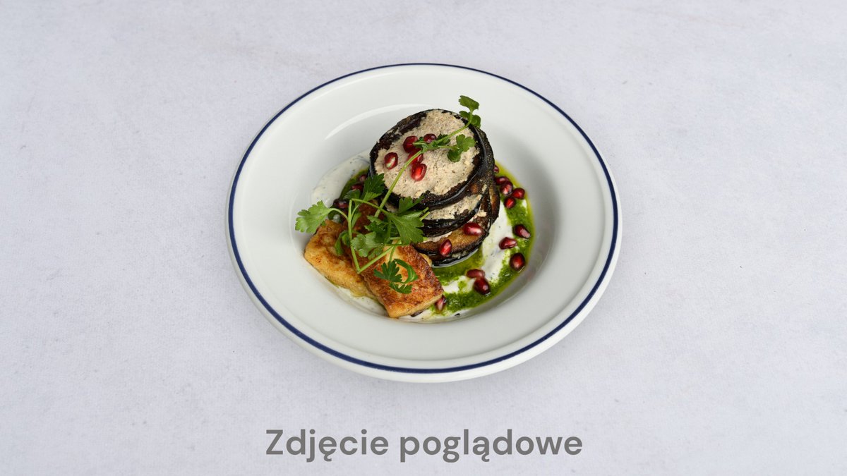 bakłażan, salsa pomidorowa, kolendra, pepperoni, prażone migdały