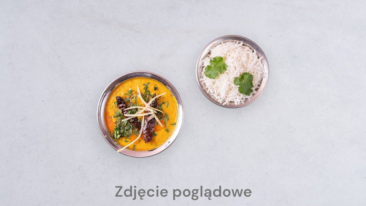 450 g. Pikantny indyjski rosół ze świeżą kolendrą, warzywami i ryżem