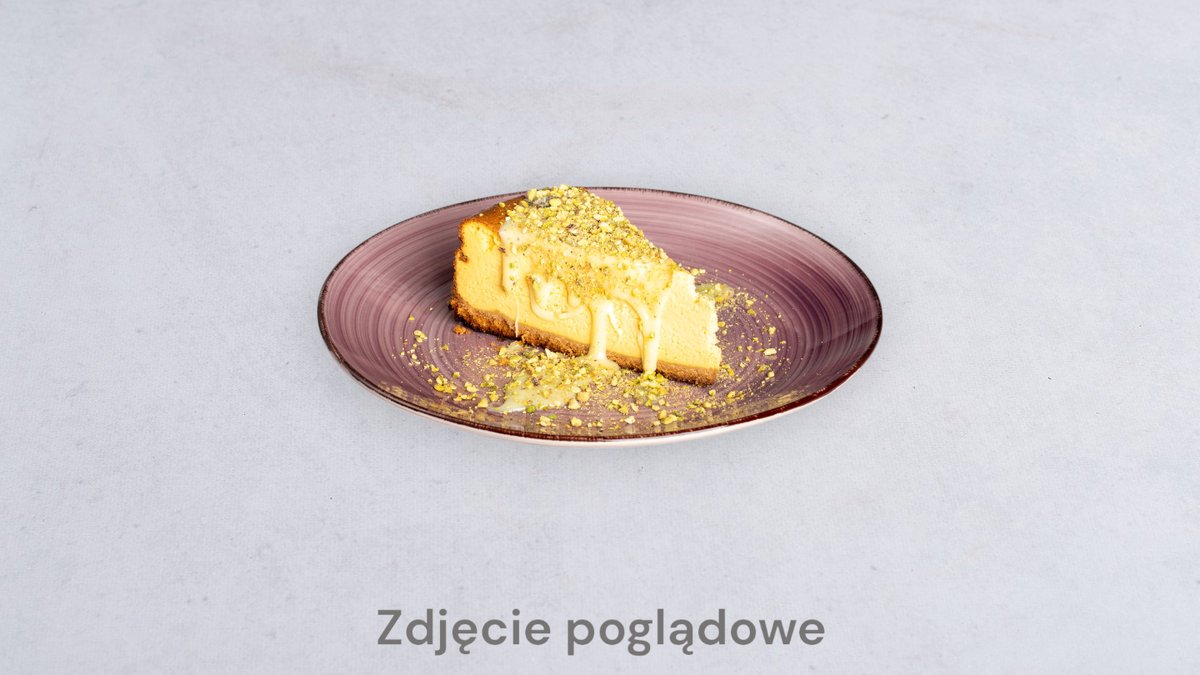 Kremowy sernik podany z lodami waniliowymi i mango