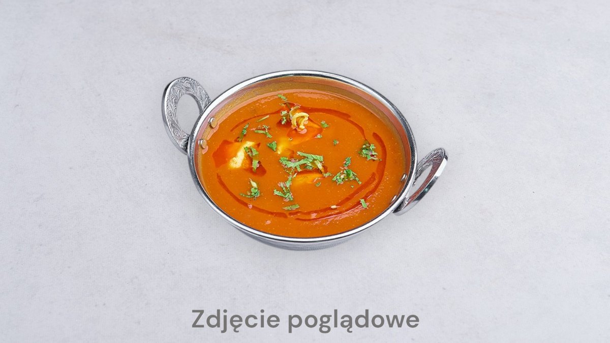250 g. Łagodny, gęsty pomidorowy sos z dodatkiem klarowanego masła, słodkiej śmietany, orzechów nerkowca i świeżej kolendry