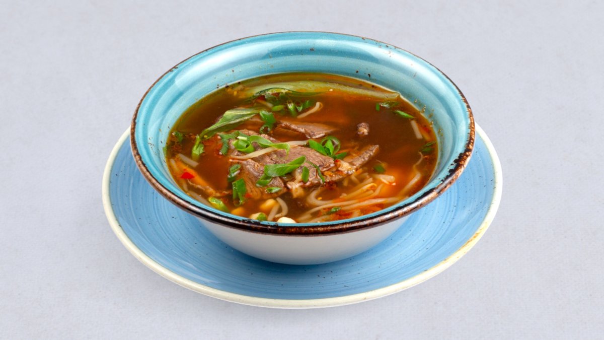 Lekki bulion mięsny o pikantni - słodkim smaku podany z wołowina, pak choiem i grubym makaronem ryżowym.