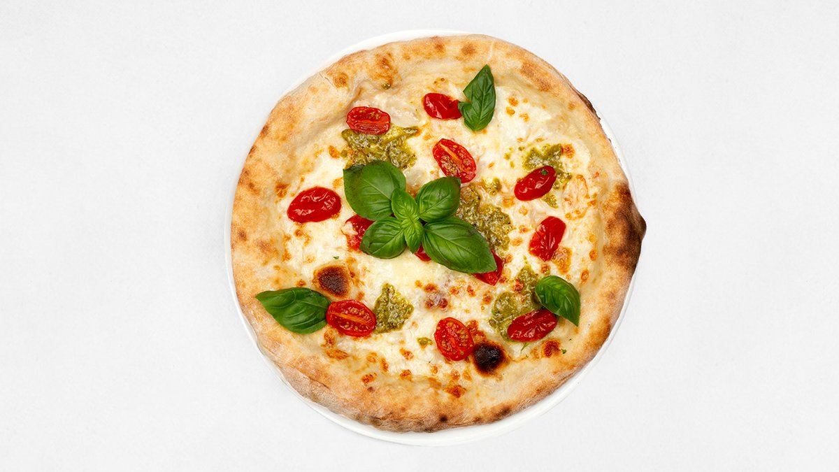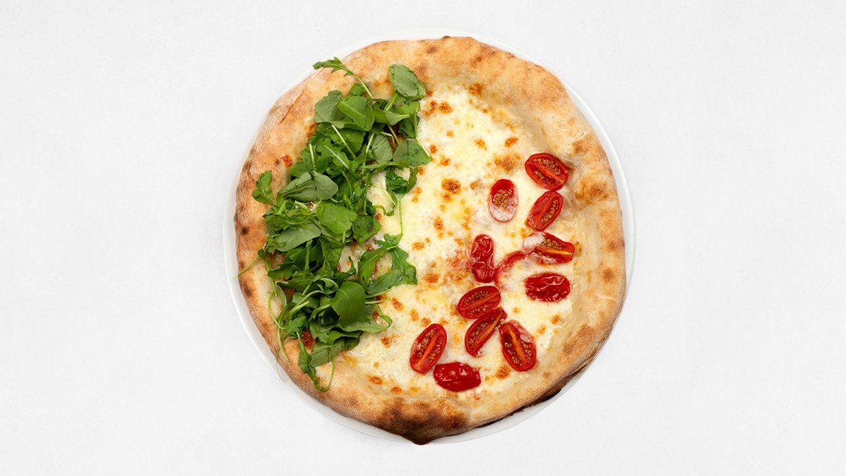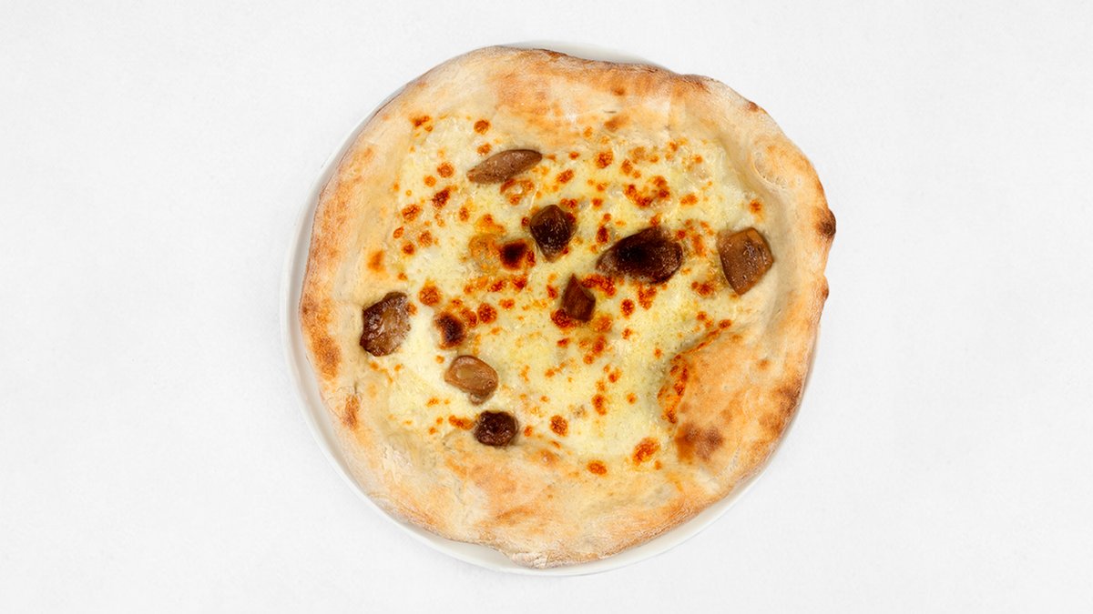 Sos z pomidorów San Marzano D.O.P, mozzarella fior di latte, parmezan, provola, gorgonzola