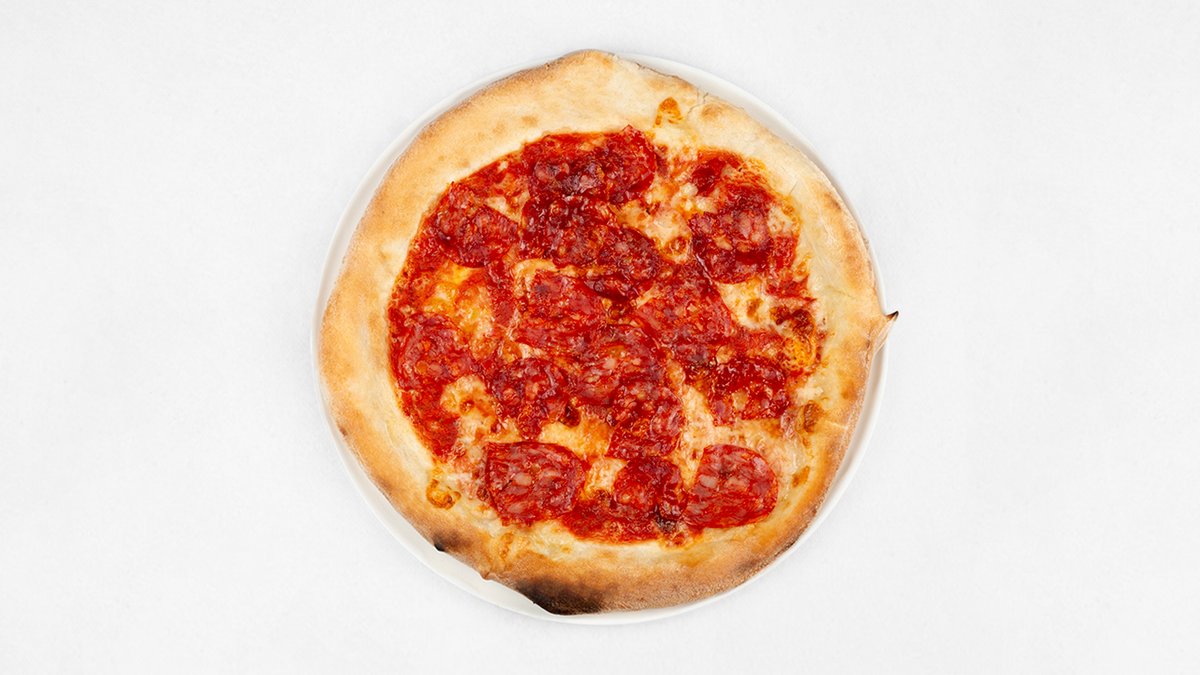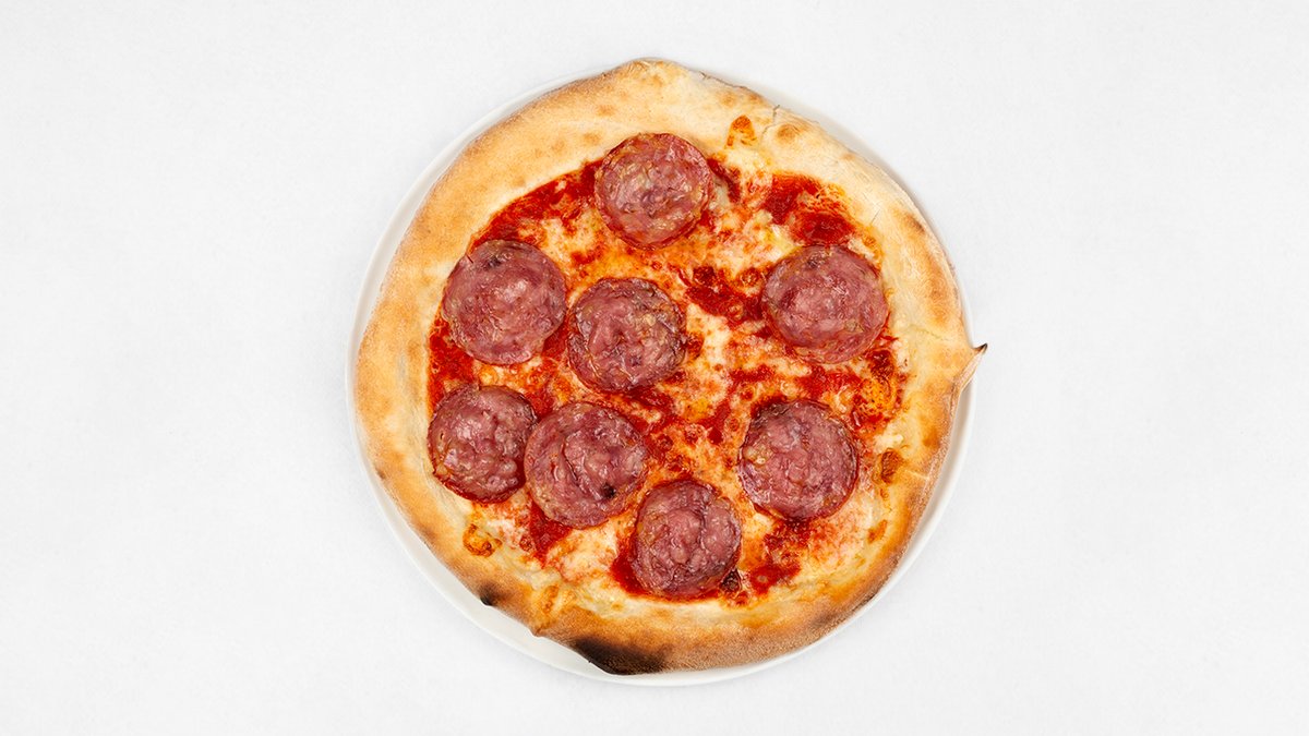 Sos z pomidorów San Marzano D.O.P, mozzarella fior di latte, pikantne salami