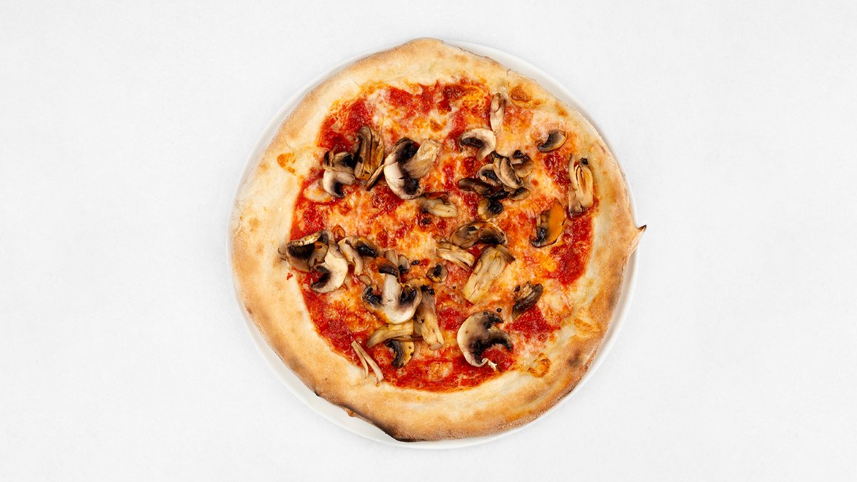 Sos z pomidorów San Marzano D.O.P, mozzarella fior di latte, pieczarki