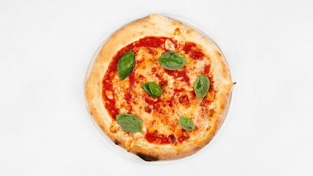 Sos z pomidorów San Marzano D.O.P, mozzarella fior di latte, bazylia