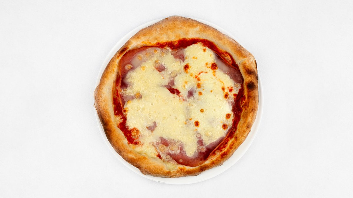 Sos z pomidorów San Marzano D.O.P, mozzarella fior di latte, szynka, pieczarki