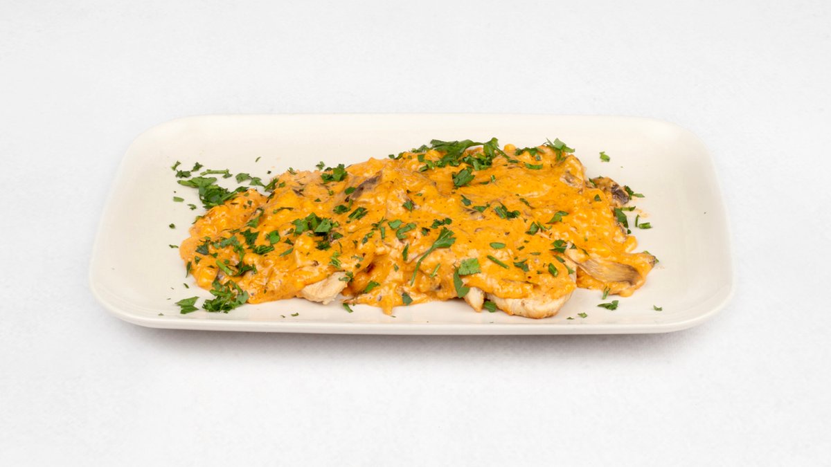 Schab z sosem z prawdziwków ze śmietaną, parmezanem i pietruszką