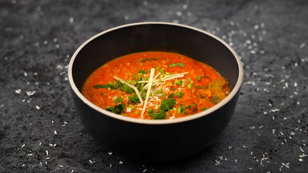 Soczyste krewetki duszone w gładkim i subtelnym sosie kokosowo-pomidorowym z dodatkiem tamaryndu