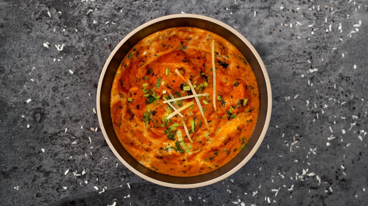 Klasyczny kurczak tikka duszony w naszym autorskim maślanym sosie ze świeżych pomidorów oraz orzechów nerkowca, jego wyjątkowy smak podkreśla pachnąca kozieradka