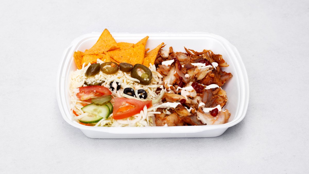 Mięso/ falafel, surówki, Frytki, ser , sos