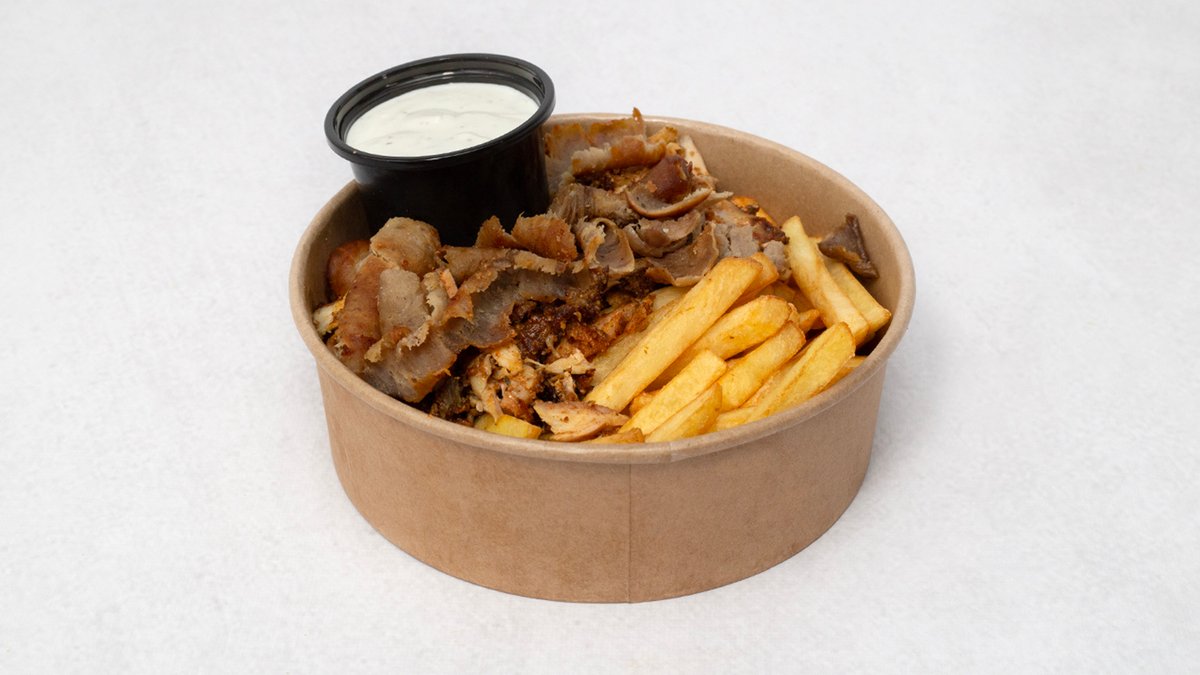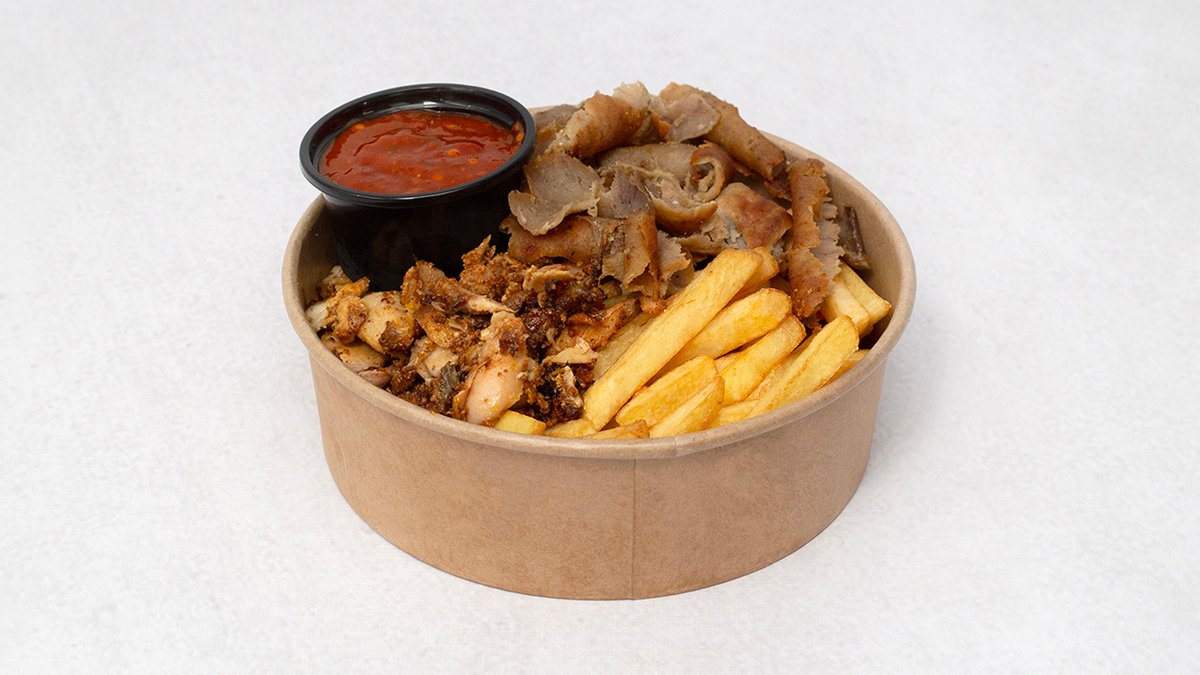 Mięso drobiowe i wołowe, frytki, ser, sos
