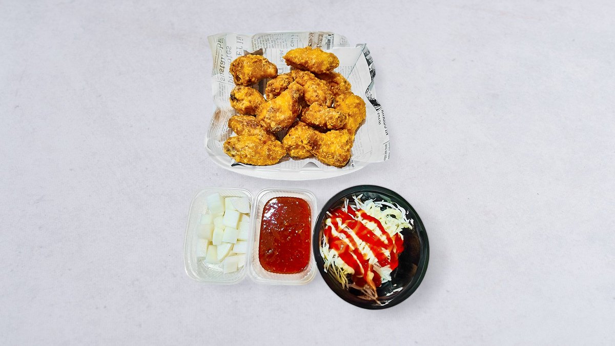 14 szt. Tradycyjne koreańskie smażone skrzydełka z kurczaka z sałatką dla min 2-3 osób