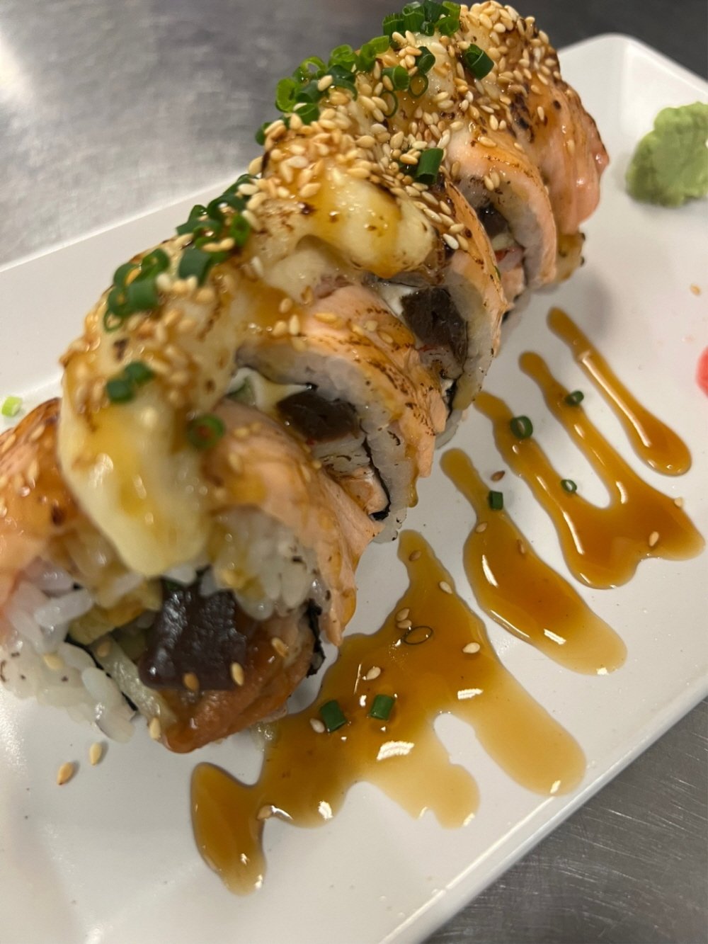 -4 Sake Tataki (Łosoś z parmezanem na wierzchu podpalany, pieczony lub surowy łosoś, ogórek, awokado, serek kremowy), 4 Rainbow Roll (Na Górze(Surowy łosoś, Tuńczyk, Biaała Ryba, Krewetka), Awokado, Surimi, Ogórek, Serek kremowy), 4 Geisha Roll (Wybrana ryba (Surowy lub pieczony łosoś, tuńczyk, węgorz słodkowodny, krewetka w tempurze), awokado, tamago, ogórek, majonez), 4 Dragon Roll (Węgorz słodkowodny, tamago, awokado, majonez), 4 Alaska Roll (Krewetka w tempurze, ogórek, surowy łosoś na górze, tamago, awokado, majonez, kawior), 5 Sashimi Roll (Rolka bez ryżu, tuńczyk, krewetki, ogórek, awokado, sałata, serek kremowy, wszystko zawinięte w łososia) -4 Sake Tataki (Salmon with Parmesan on top flamed, bake salmon or raw salmon, Cucumber Avokado, Cream Cheese), 4 Rainbow Roll (On Top (Raw Salmon, Tuna, White Fish, Shrimp), Avokado, Surimi, Cucumber, Cream Cheese), 4 Geisha Roll (Chosen Fish ( Raw Salmon or Baked Salmon , Tuna, Shrimp Tempura, Unagi), Avokado, Tamago, Cucumber, Mayo), 4 Dragon Roll (Unagi, Tamago, Avocado, Mayo), 4 Alaska Roll (Shrimp Tempura, Cucumber, Raw Salmon on Top, Tamago, Avocado, Mayo, Caviar), 5 Sashimi Roll (Without Rice, Tuna, Shirmp, Cucumber, Avokado, Lettuce, Cream Cheese, All wrapped in Salmon)