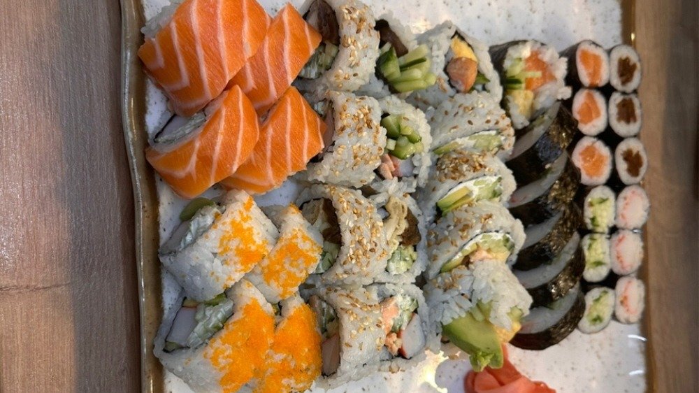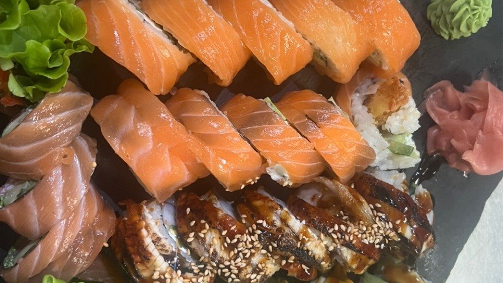 -12 Futo Ten Roll (Surowy łosoś, Serek kremowy, Tamago, Ogórek, Awokado, Marynowana rzodkiewka, Rolka smażona w panko), 5 Philadelphia Roll (Pieczony lub surowy łosoś, Awokado, Ogórek, Tamago, Serek kremowy), 12 Hosomaki (6 z łososiem, 6 z ogórkiem), 5 Ebi Gold (Krewetka w tempurze, ogórek, surowy łosoś, tamago, awokado, majonez, kawior), 8 Sake Tataki (Łosoś z parmezanem na wierzchu podpalany, pieczony lub surowy łosoś, ogórek, awokado, serek kremowy), 8 Sake Gold (Surowy łosoś, Awokado, Surimi, Ogórek, Serek kremowy), 8 Dragon Roll (Węgorz słodkowodny, tamago, awokado, majonez), 10 Sashimi Roll (Rolka bez ryżu, tuńczyk, krewetki, ogórek, awokado, sałata, serek kremowy, wszystko zawinięte w łososia) -12 Futo Ten Roll (Raw Salmon, Cream Cheese, Tamago, Cucumber, Avokado, Pickled Radish, Roll Fried with Panko), 5 Philadelphia Roll (Baked or Raw Salmon, Avokado, Cucumber, Tamago, Cream Cheese), 12 Hosomaki (6 with salmon, 6 with cucumber), 5 Ebi Gold (Shrimp Tempura, Cucumber, Raw Salmon, Tamago, Avokado, Mayo, Caviar), 8 Sake Tataki (Salmon with Parmesan on top flamed, bake salmon or raw salmon, Cucumber, Avokado, Cream Cheese), 8 Sake Gold (Raw Salmon, Avokado, Surimi, Cucumber, Cream Cheese), 8 Dragon Roll (Unagi, tamago, Cucumber, Avokado, Mayo), 10 Sashimi Roll (Without Rice, Tuna, Shirmp, Cucumber, Avokado, Lettuce, Cream Cheese, All wrapped in Salmon)