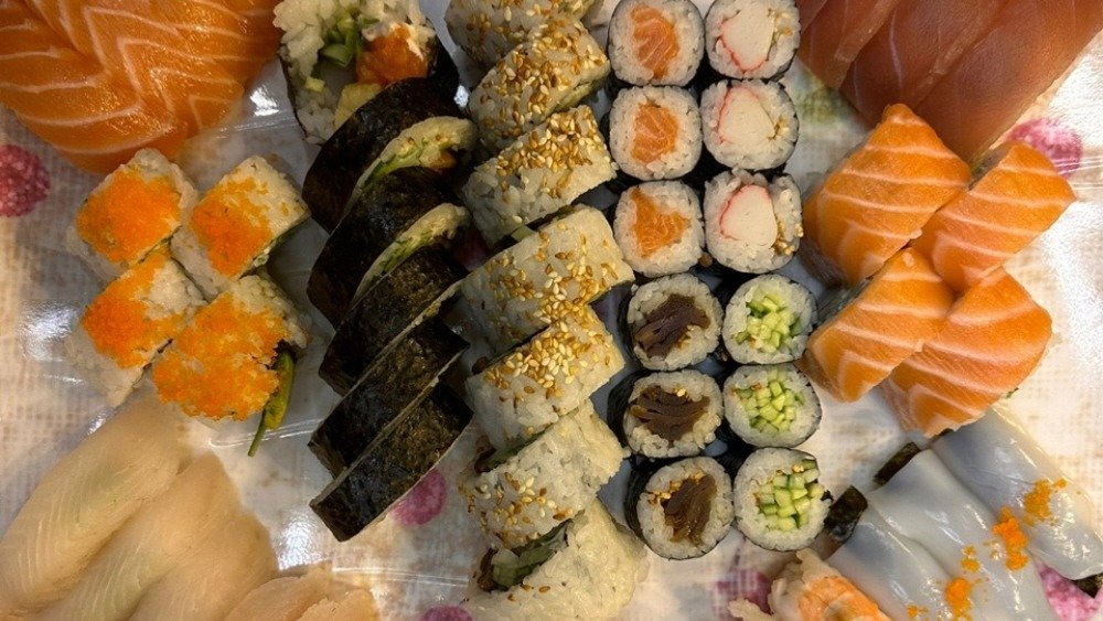 -6 Futomaki (ogórek, awokado, tamago, majo), 6 Sake Futomaki (Surowy lub pieczony łosoś, ogórek, awokado, tamago, serek kremowy), 12 Hosomaki (6 z łososiem, 6 z ogórkiem), 4 California Sake (Surowy łosoś, Awokado, Surimi, Ogórek, Serek kremowy), 5 Philadelphia Roll (Pieczony lub surowy łosoś, Awokado, Ogórek, Tamago, Serek kremowy), 12 Futo Ten (Surowy łosoś, Serek kremowy, Tamago, Ogórek, Awokado, Marynowana rzodkiewka, Rolka smażona w panko) -6 Futomaki (cucumber, avocado, tamago, mayo), 6 Sake Futomaki (Raw or baked salmon, cucumber, avocado, tamago, cream cheese), 12 Hosomaki (6 with Salmon, 6 with Cucumber), 4 California Sake (Raw Salmon, Avokado, Surimi, Cucumber, Cream Cheese), 5 Philadelphia Roll (Baked or Raw Salmon, Avokado, Cucumber, Tamago, Cream Cheese), 12 Futo Ten (Raw Salmon, Cream Cheese, Tamago, Cucumber, Avokado, Pickled Radish, Roll Fried with Panko)