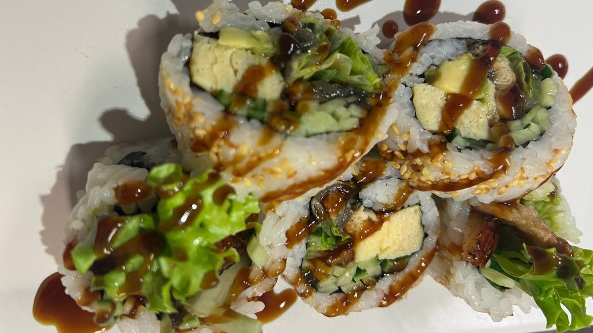 -Grilowany wegorz słodkowodny, Ogórek, Tamago, Sałata, Awokado, Serek kremowy -Grilled Unagi, Cucumber, Tamago, Lettuce, Avokado, Cream Cheese