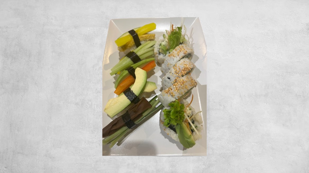 -Nigiri 5 (spytać obsługę), Vege roll 5 (ogórek, tykwa kanpyo, awokado, sałata, serek kremowy, marynowana rzodkiewka), -Nigiri 5 (ask the staff), Vegeroll 5 (Cucumber, Kanpyo, Avokado, Lettuce, Cream Cheese , Pickled Radish)