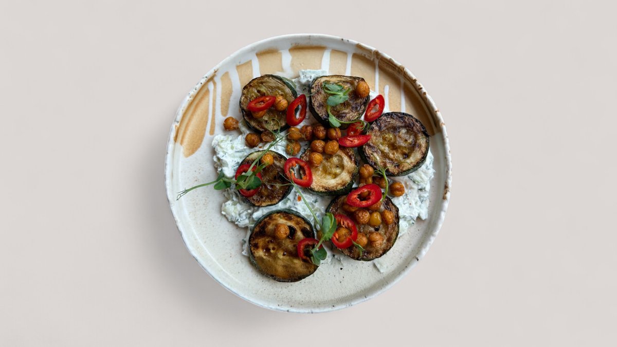 cukinia ~ tzatzyki na cytrynowym labnehu ~ chrupiąca pikantna cieciorka ~ chilli