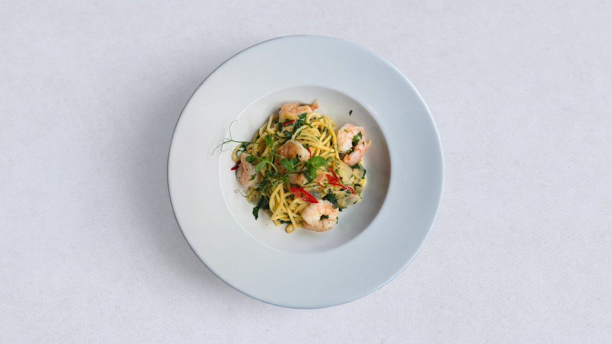 świeży makaron chitarra ~ krewetki vannamei ~ masło ~ oliwa ~ skórka z cytryny ~ czosnek ~ chili ~ natka pietruszki