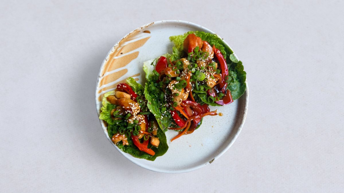 filet z kurczaka ~ sos teriyaki ~ sałata rzymska ~ papryka ~ marchewka ~ sezam ~ szczypiorek