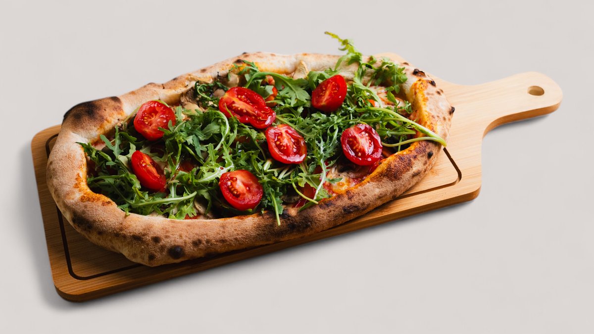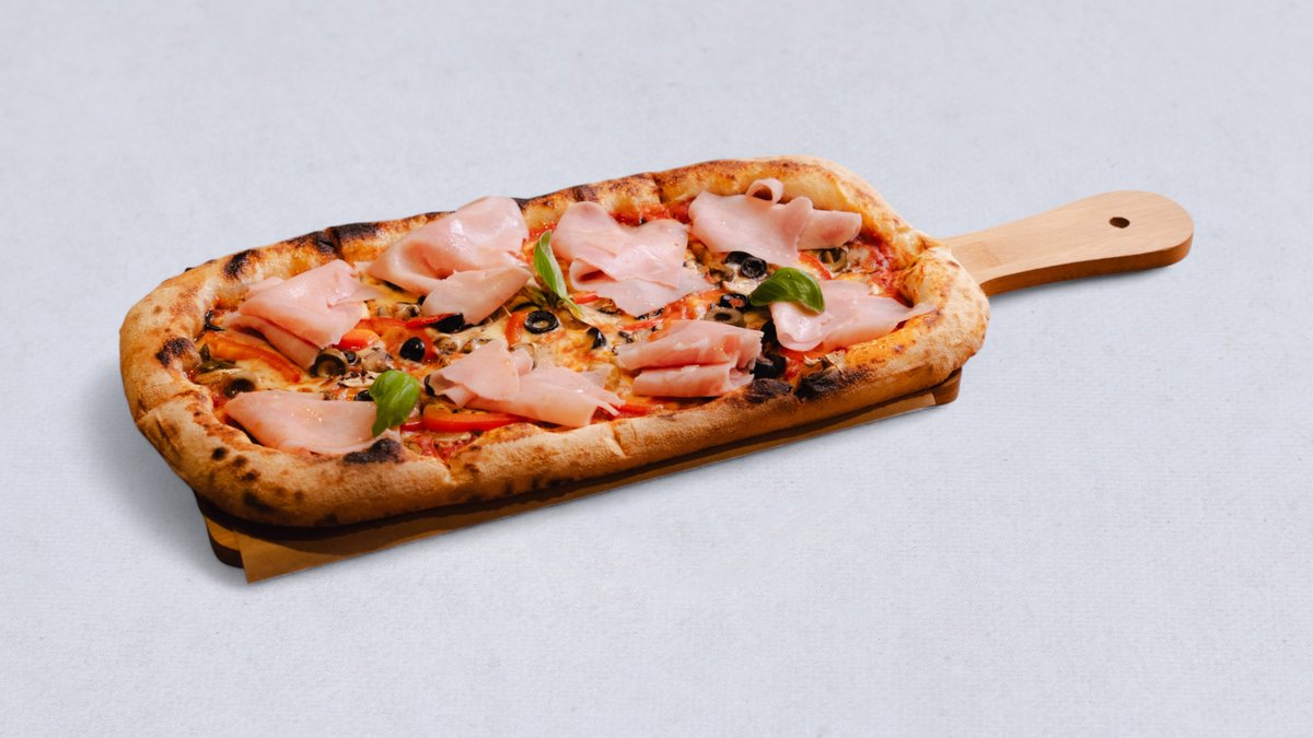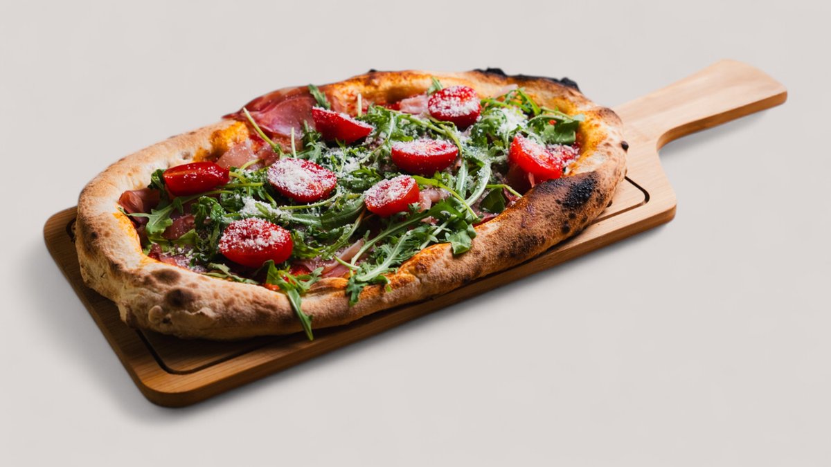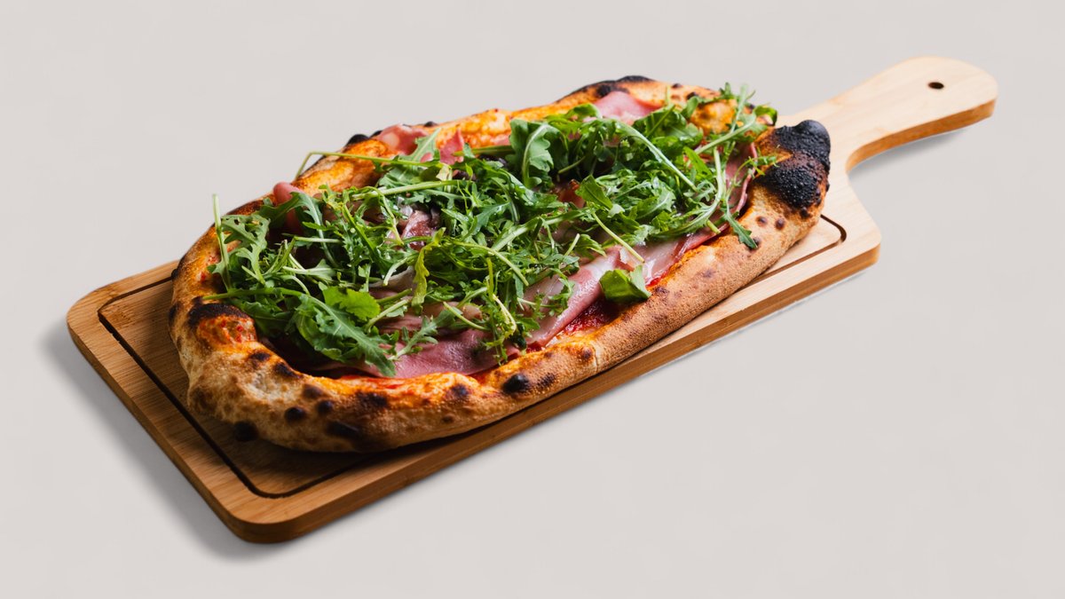 Pinsa to rzymska kuzynka pizzy. Różni się długim kształtem, jest bardziej puszysta i lekkostrawna, chrupiąca z zewnątrz i miękka w środku