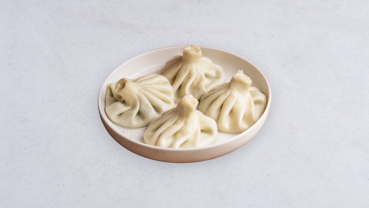 Ręcznie robione pierożki w kształcie sakiewek, z mięsem wieprzowo-wołowym i rosołkiem w środku