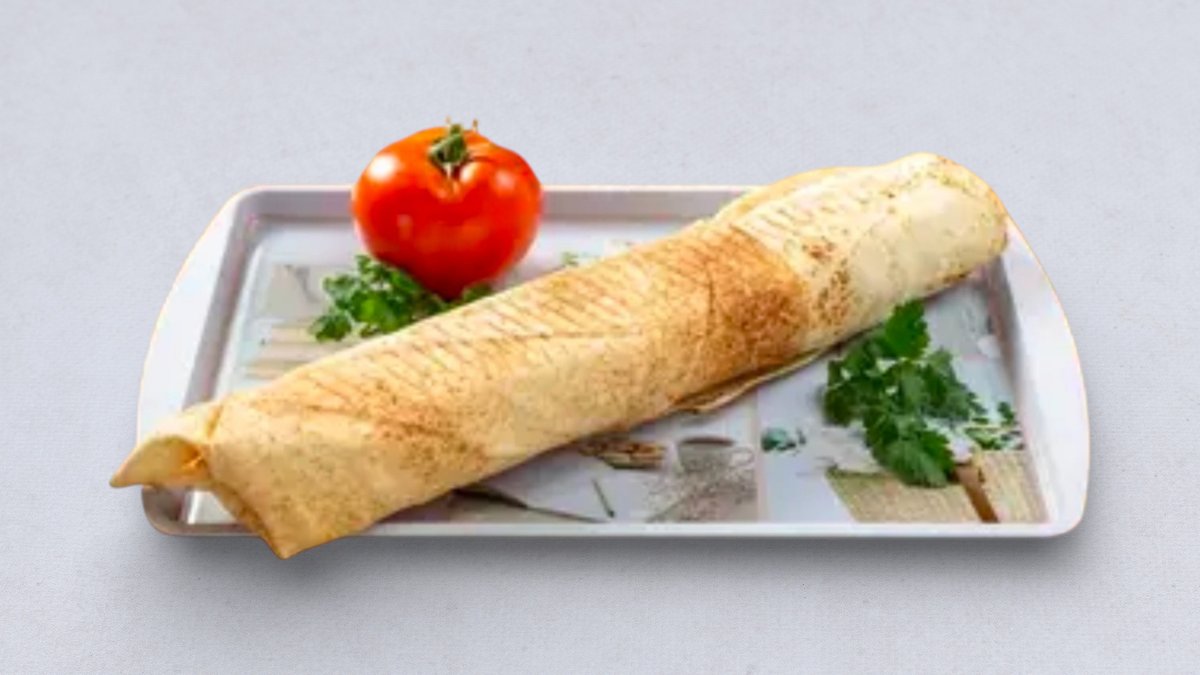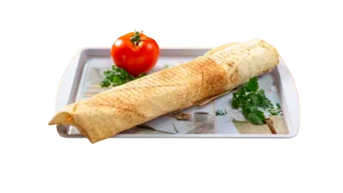 Mięso, surówka, żólty ser, pomidor, cebula i sos.