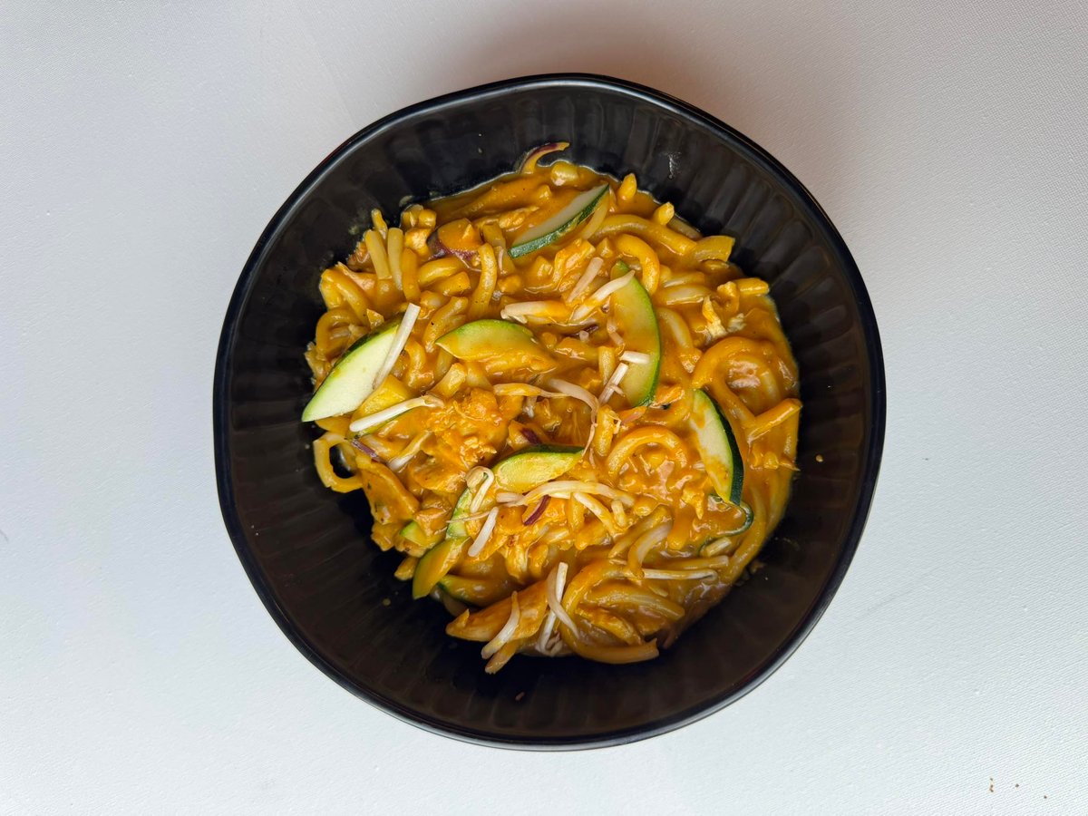 Sos mango curry / kurczak / makaron udon / cukinia/ mini kukurydza/ cebula / kiełki