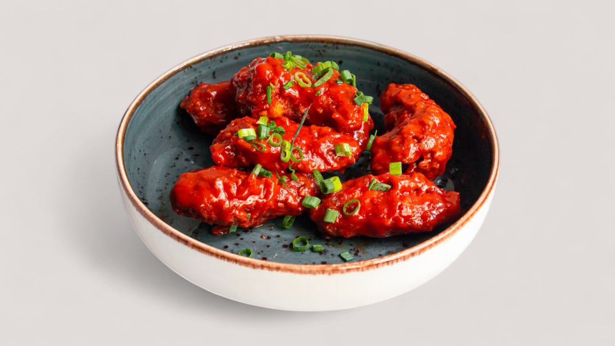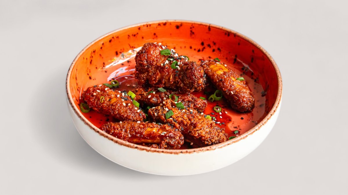 Panierowane, smażone skrzydełka kurczaka (7 sztuk) polane sosem Teriyaki.
