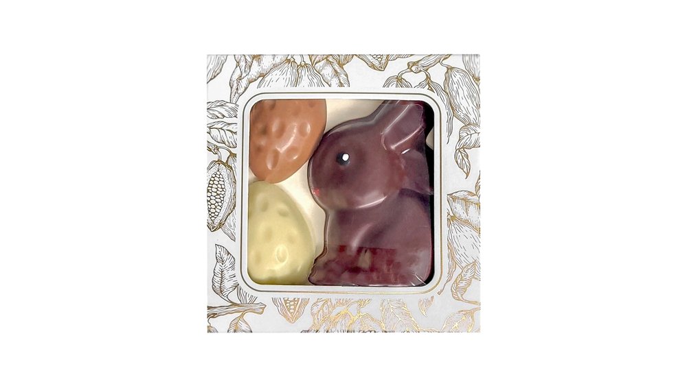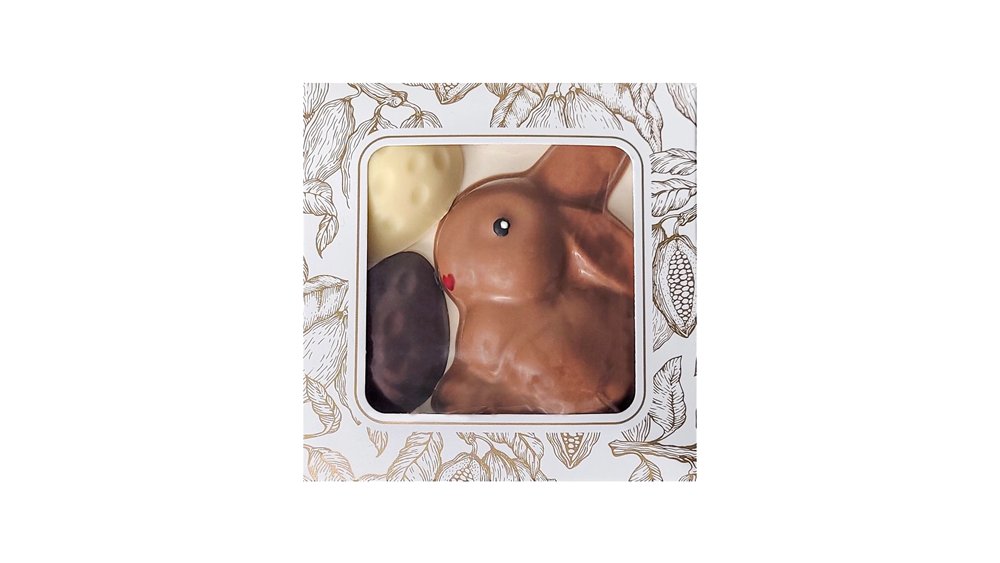 20,00 złWielkanocny Zając z pisankami z mlecznej, białej i deserowej czekolady (50g)