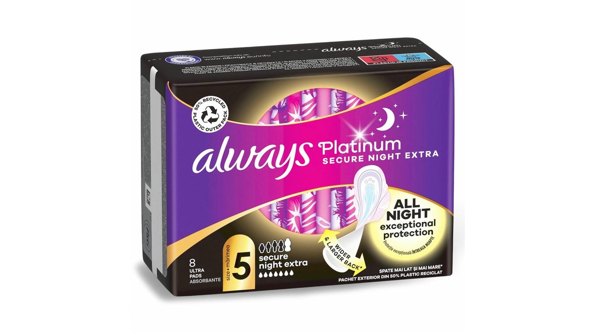 Absorbante Always Platinum Secure Night Extra, 8 buc