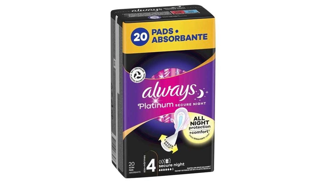 Absorbante Always Platinum Secure Night, 20 buc