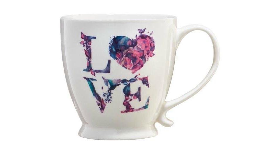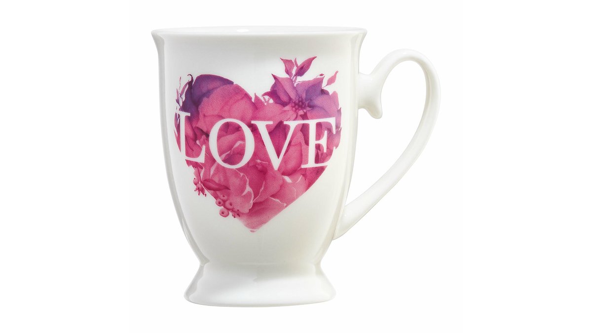 Cana Ambition, model inima roz, portelan, 300 ml, Alb cu decor