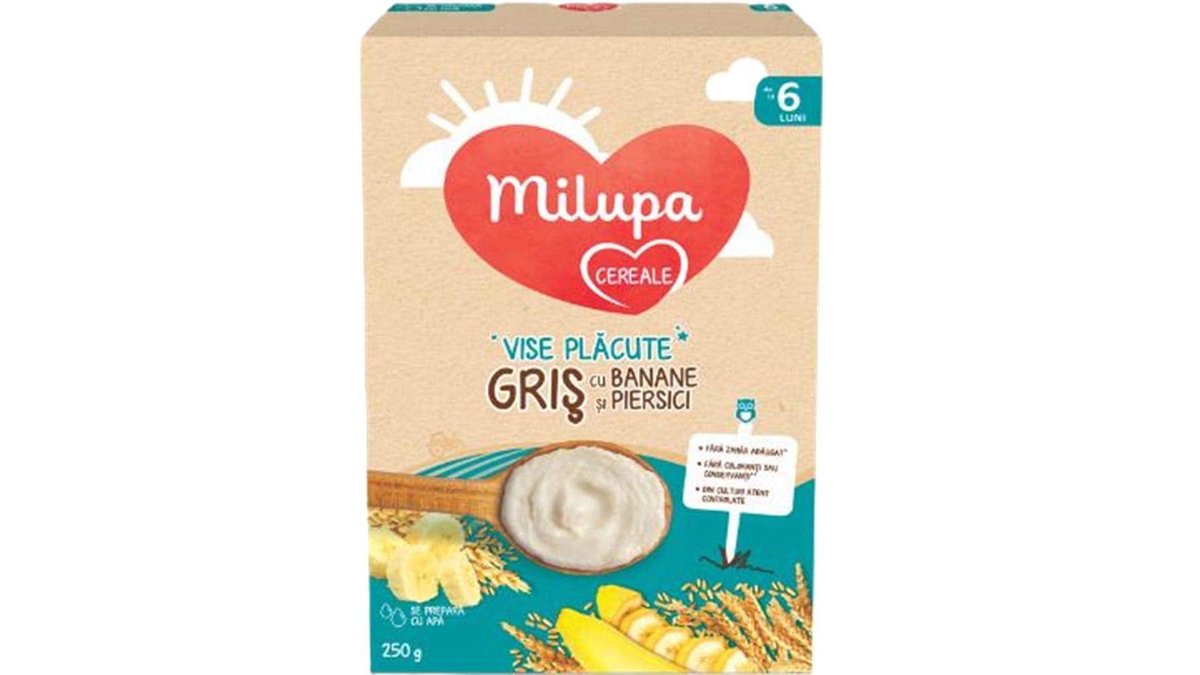 Milupa Vise Pl?cute Gri? Cu Banane Si Piersici, 250 G, De La 6 Luni