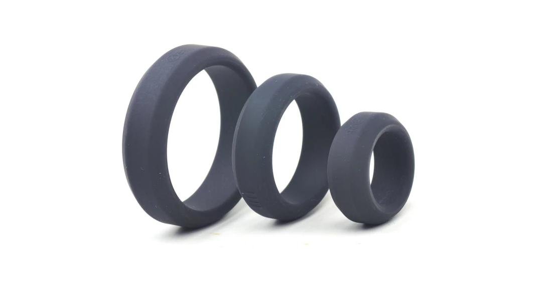 Enhanced Black Color Silicone Triple Cock Ring Set LUX09679