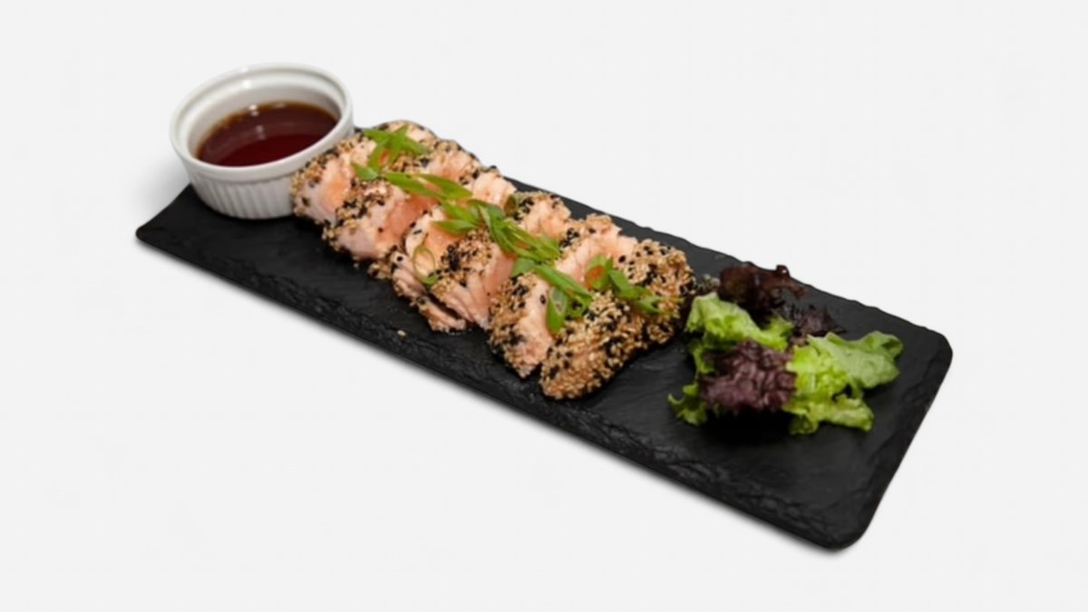 Orez, Somon Teriyaki, Crema de Branza, Avocado, Sos Teriyaki.