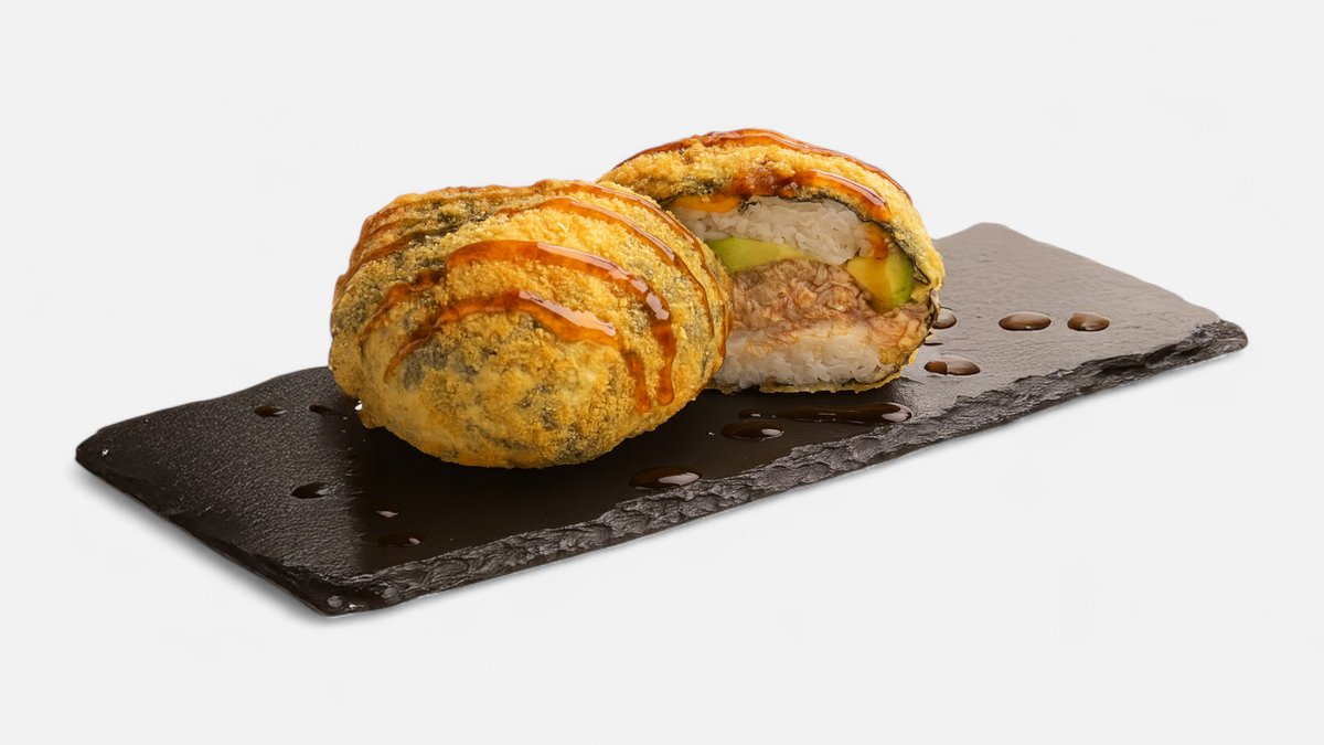 Orez, Ton Flambat, Creveti Tempura, Avocado, Crema de Branza, Sos Srirracha. cca.225g