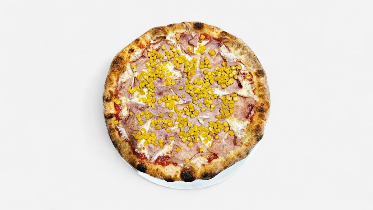 Pomodoro, mozzarella, panna,proscitto crudo/sos de roșii, mozzarella, smântână, suncă crudă 33 cm în diametru