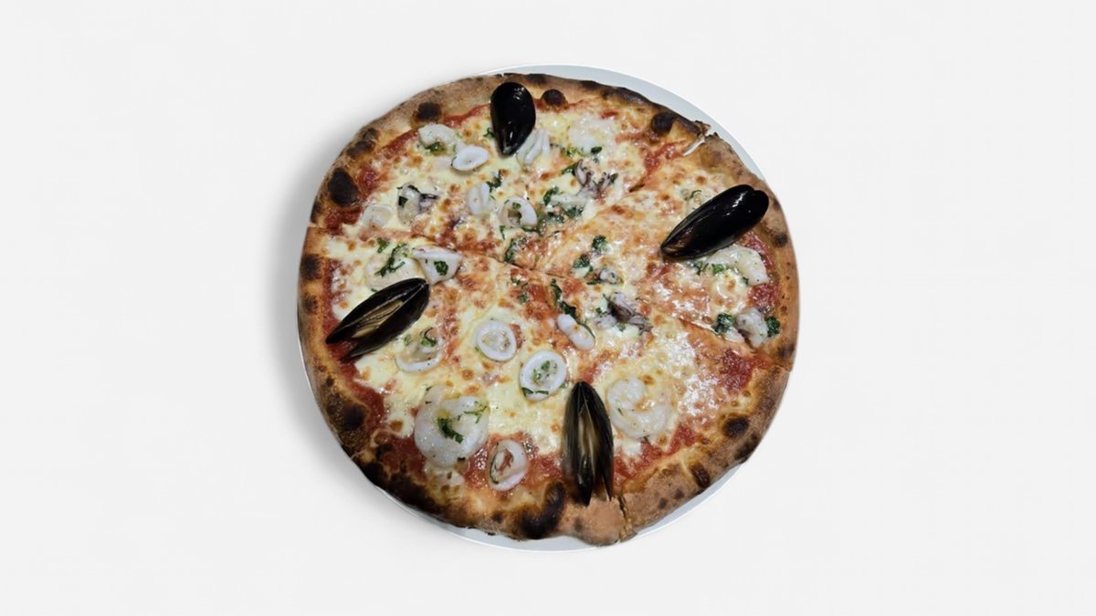 Sos de roșii, mozzarella, calamri 33 cm în diametru