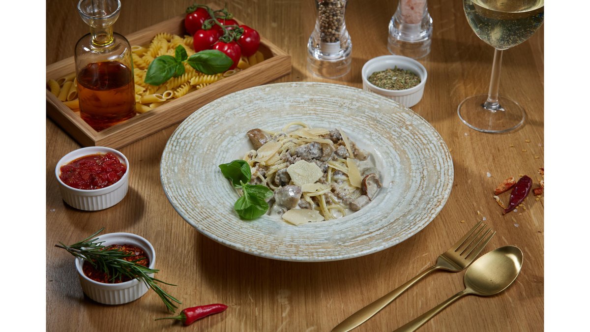 Linguini funghi porcini e salsiccia toscana