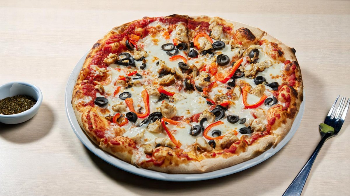 Piept pui, sos, mozzarella, ciuperci, măsline 685g