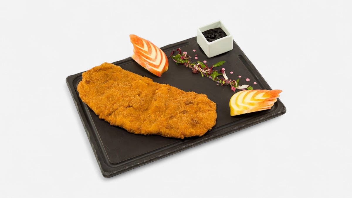 Șnițel din piept de pui, mozzarella, vânătă, sos napoli, sare, piper 450g