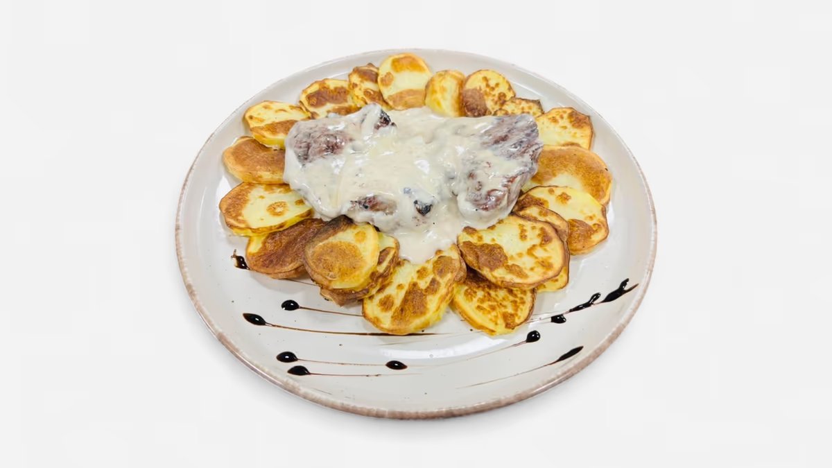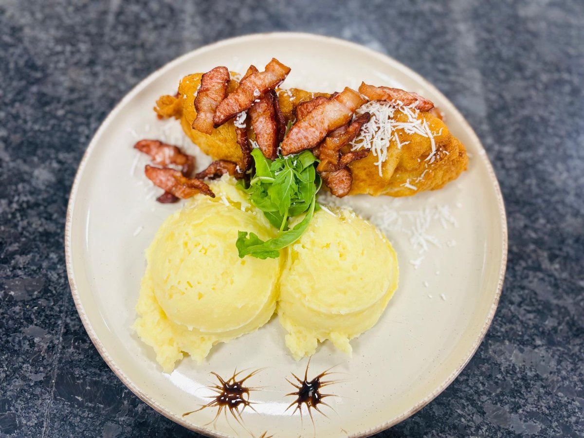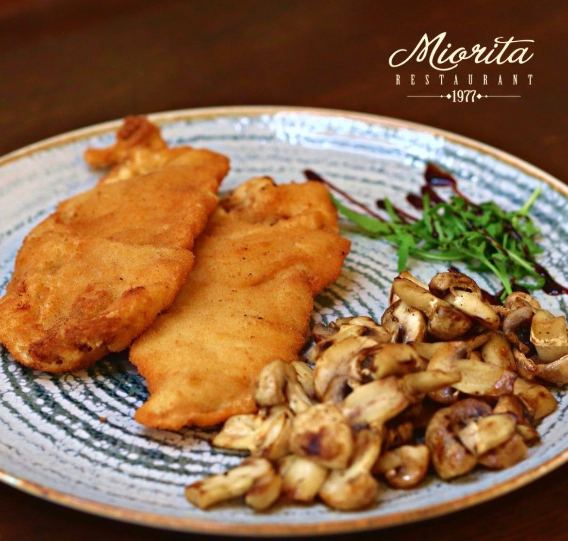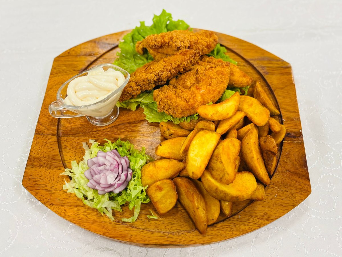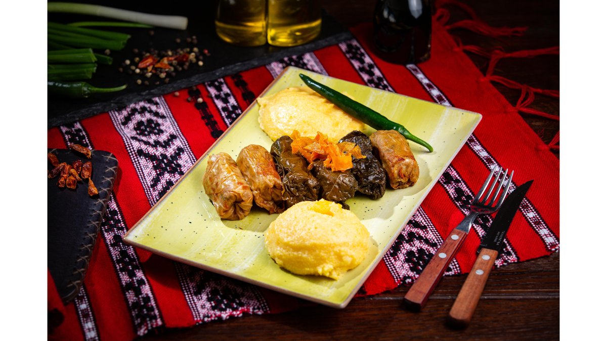 Cotlet, piept de pui, ficăţei de pui, câmăciori proaspeți, brânză de burduf, cartofi boierești, murături, mămăligā 650 g