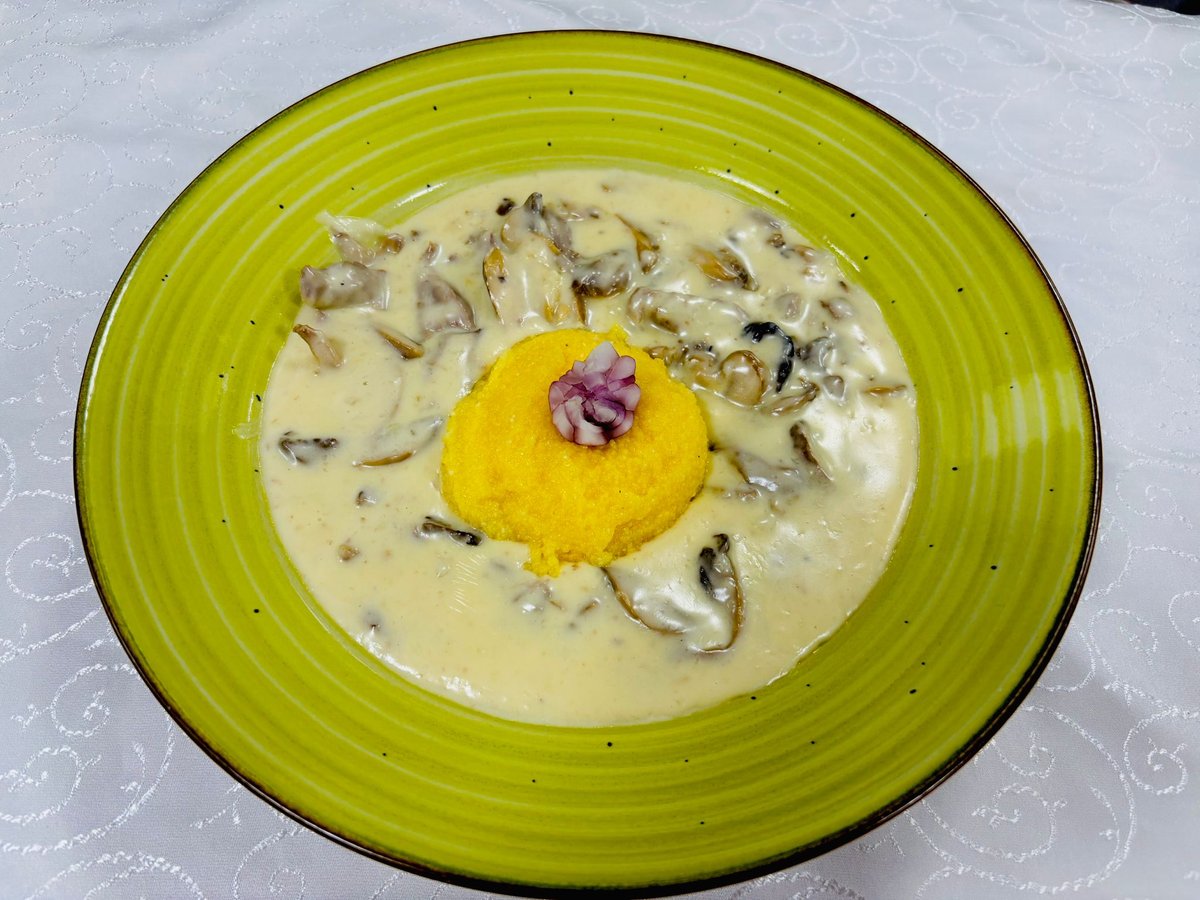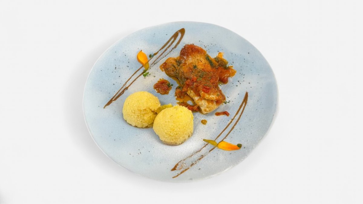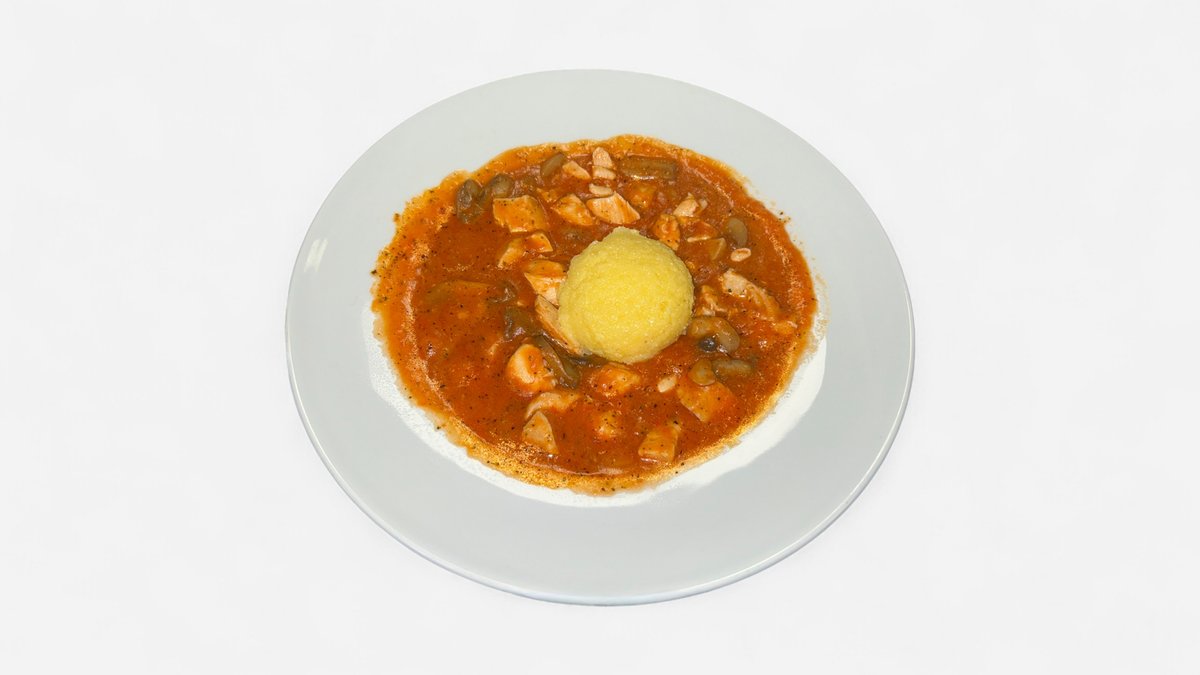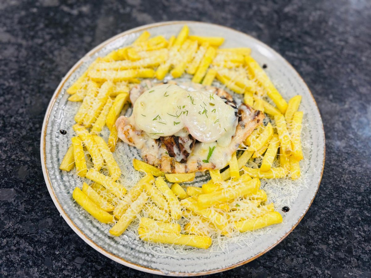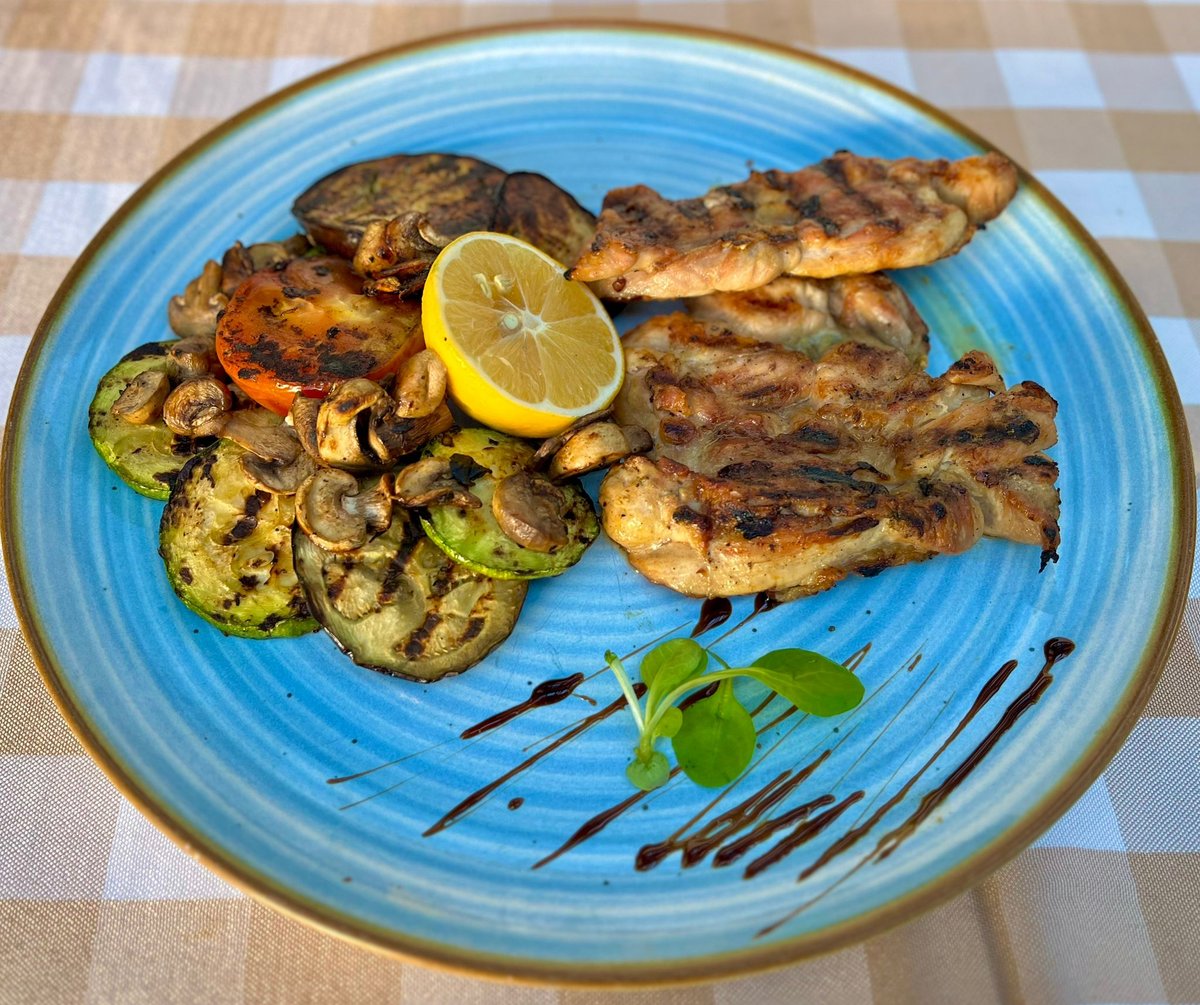 Piept de pui, ficat de pui, ou, brånză de burduf, mămăligă 400 g