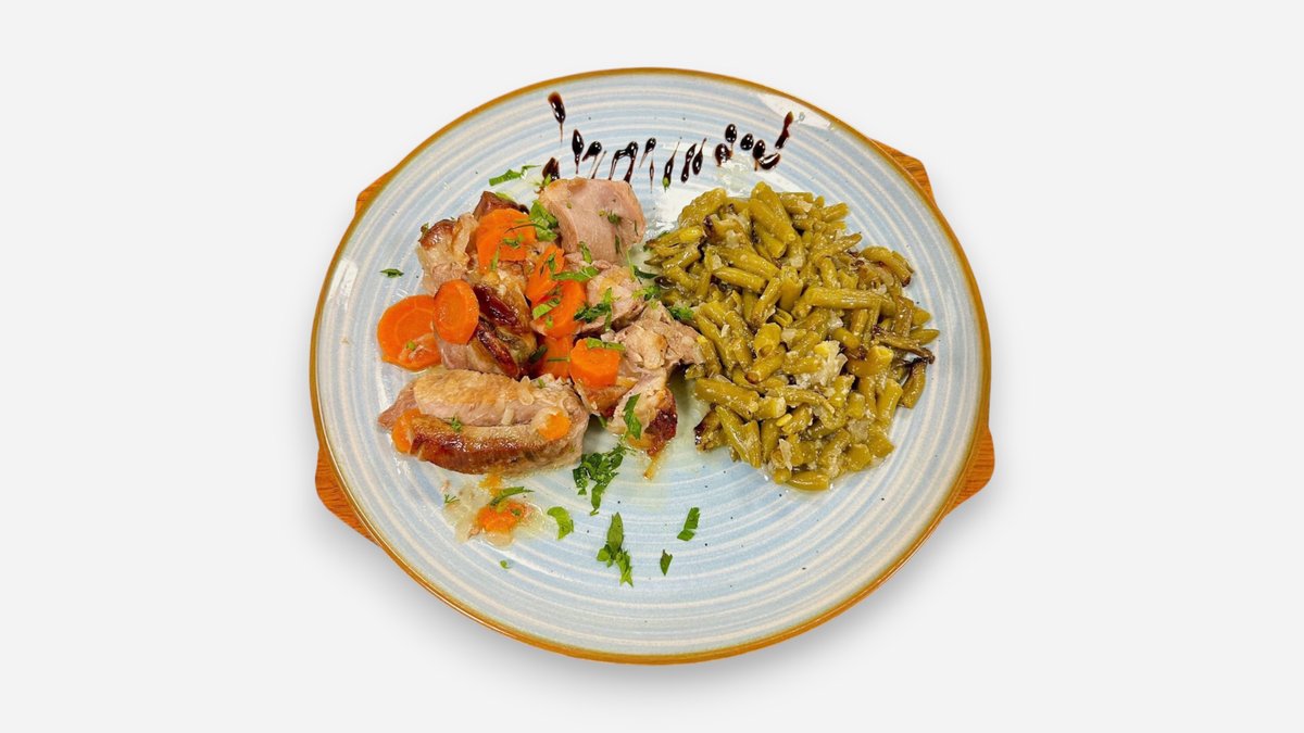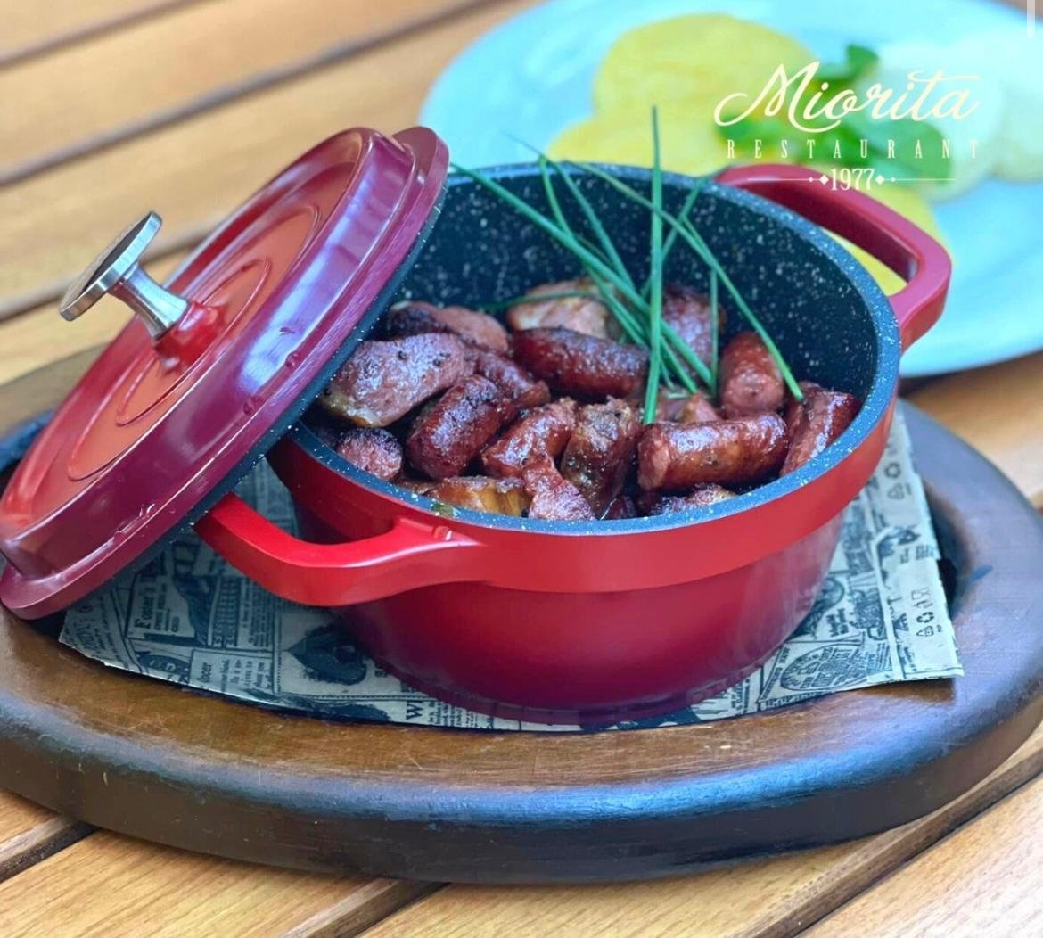 Pulpă de porc, cârnați, bacon, ficat de pui, brânză de burduf, mămăligă 450 g