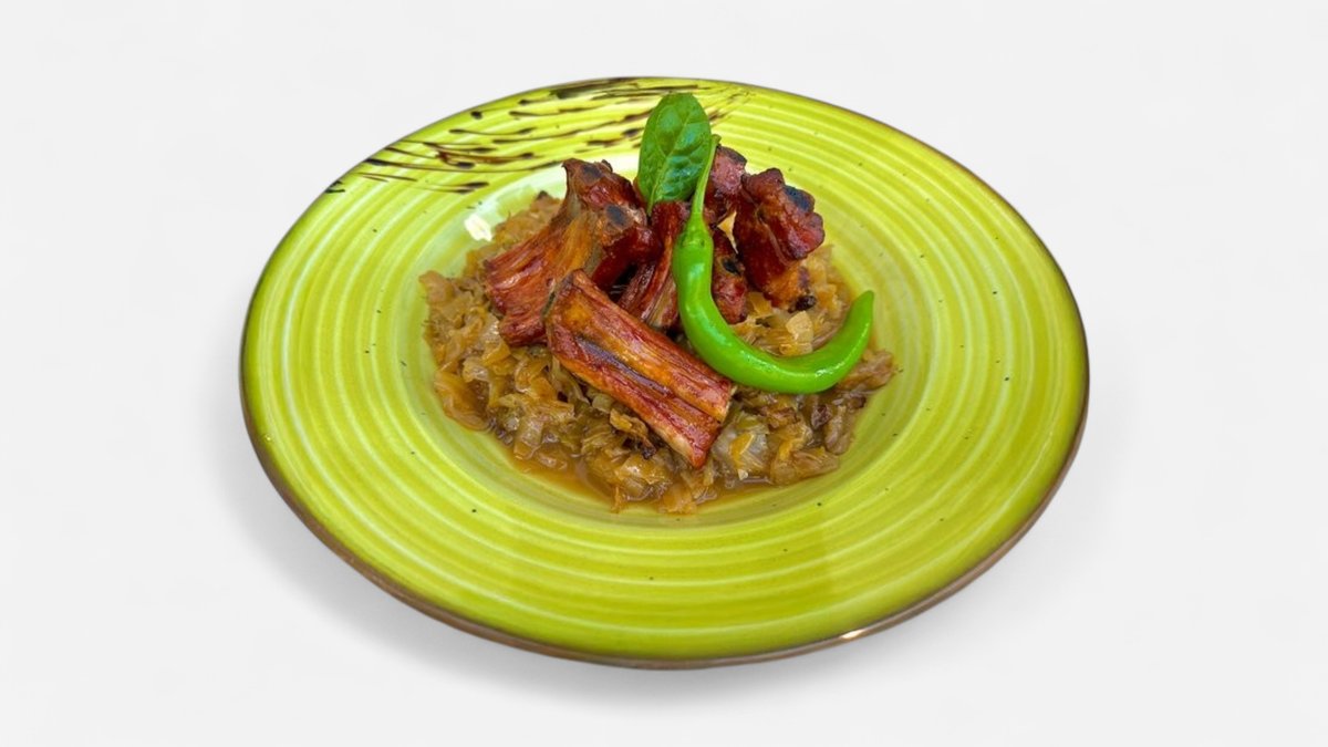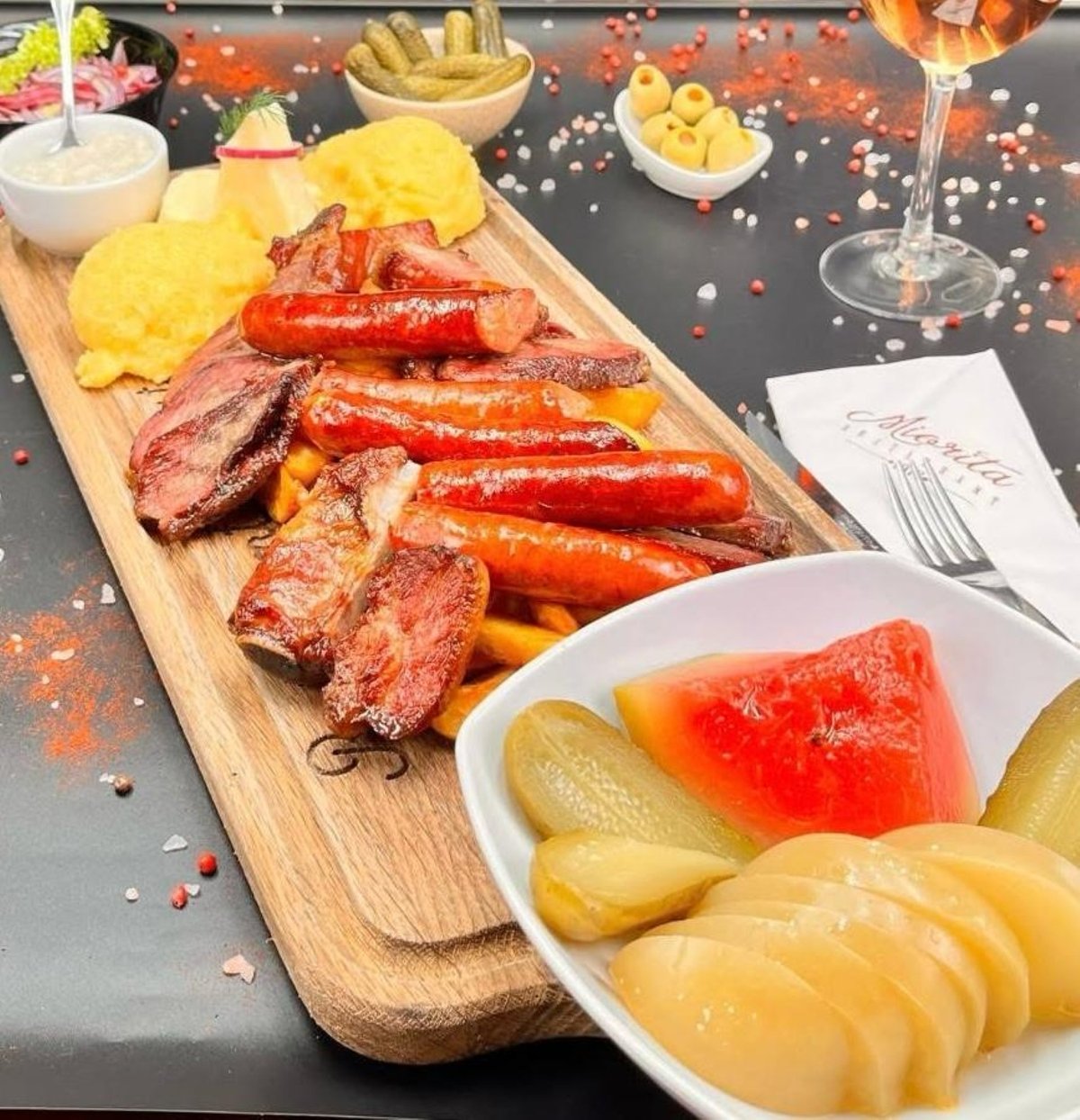 Pastramă de oaie, coaste de porc, câmați de oaie, brânză de burduf, murături, cartofi boierești, hrean, mămăligă 650 g