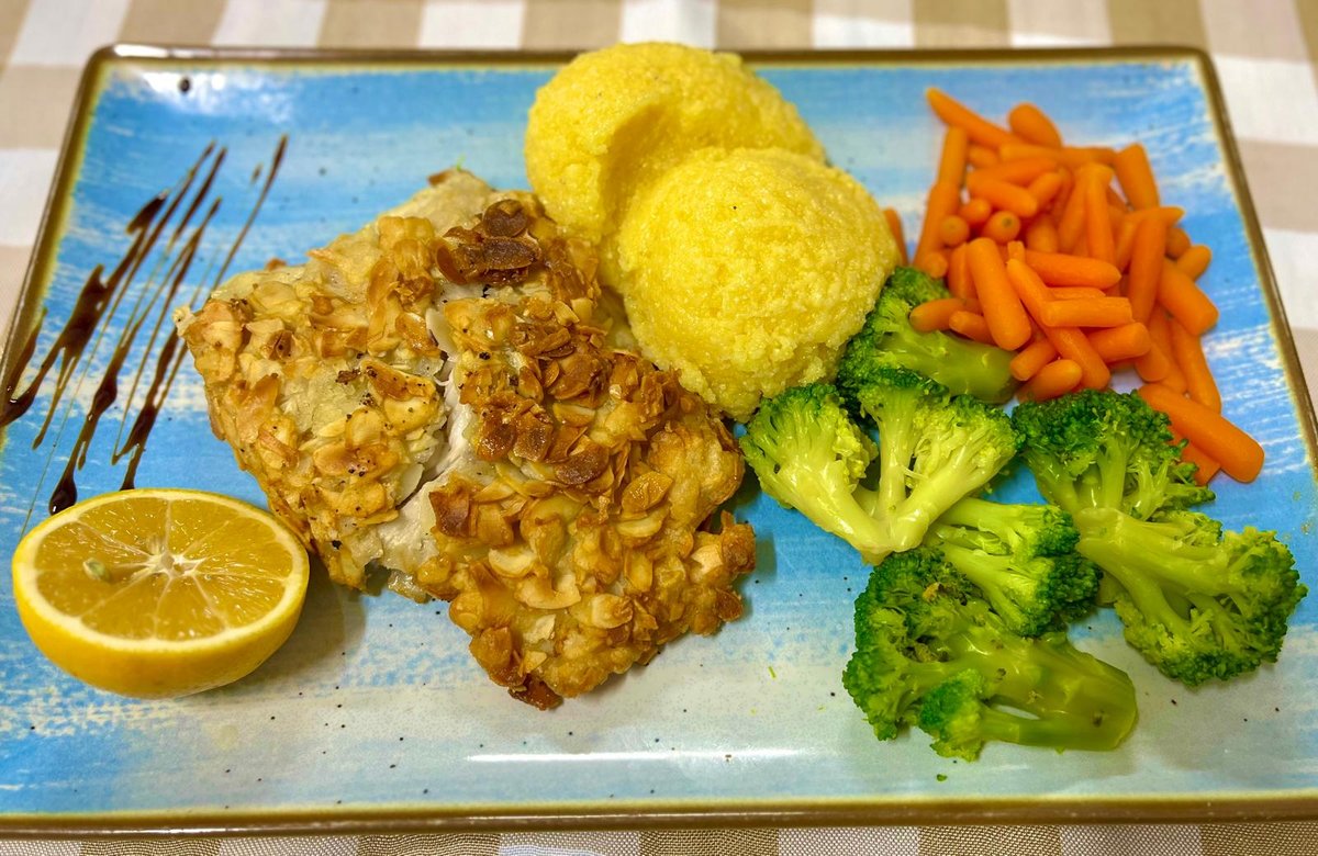 Piept de pul, ou, fulgi de porumb, făină 200 g
