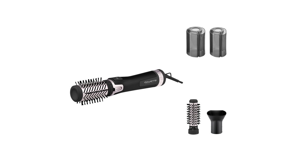 Perie rotativa Rowenta Brush Activ`Dry & Style CF9550F0, 1000 W, 3 accesorii, 3 trepte de temperatura/viteza, duza pre-uscare, invelis ceramic, generator dublu de ioni, jet de aer rece, inel pentru agatare, negru