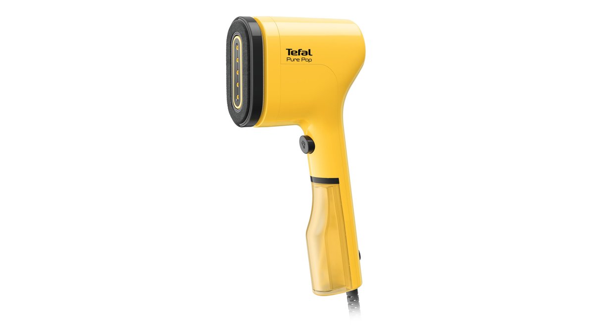 Aparat de calcat vertical cu abur Tefal Pure Pop Garment DT2026E1, 1300 W, recipient apa 70 ml, autonomie rezervor apa 4 minute, galben