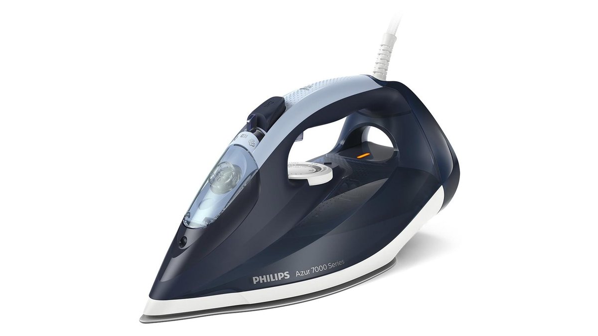 Fier de calcat Philips Azur DST7030/20, 2800W, debit de abur continuu de 50g/min si jet de abur de 250 g, talpa SteamGlide Plus, rezervor de 300ml si sistem de curatare automata cu rezervor integrat pentru calcar, oprire automata de siguranta, albastru